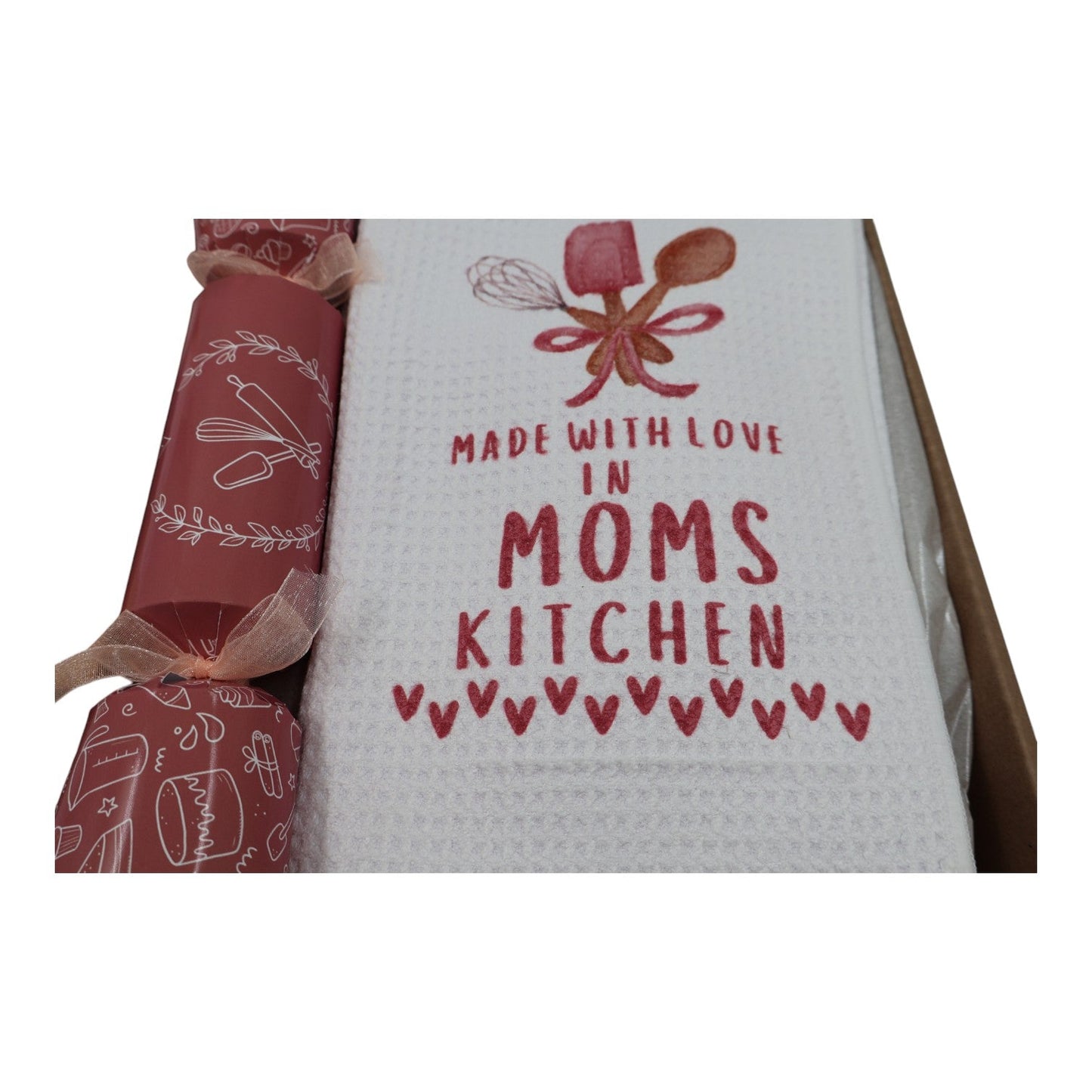 Spoil the queen of the kitchen with this charming Mom’s Baking Box — a sweet and thoughtful gift that’s as heartwarming as her home-cooked treats. Featuring a soft oven glove and matching dishcloth with heartfelt sayings, a beautifully wrapped wooden spoon with a “Mom, you bake me happy” tag, and a festive mini cracker with a little surprise inside, this gift is perfect for the mom who adds love to every recipe. It’s a fun and practical way to say thank you for all the warmth she brings to your life — one delicious dish at a time.